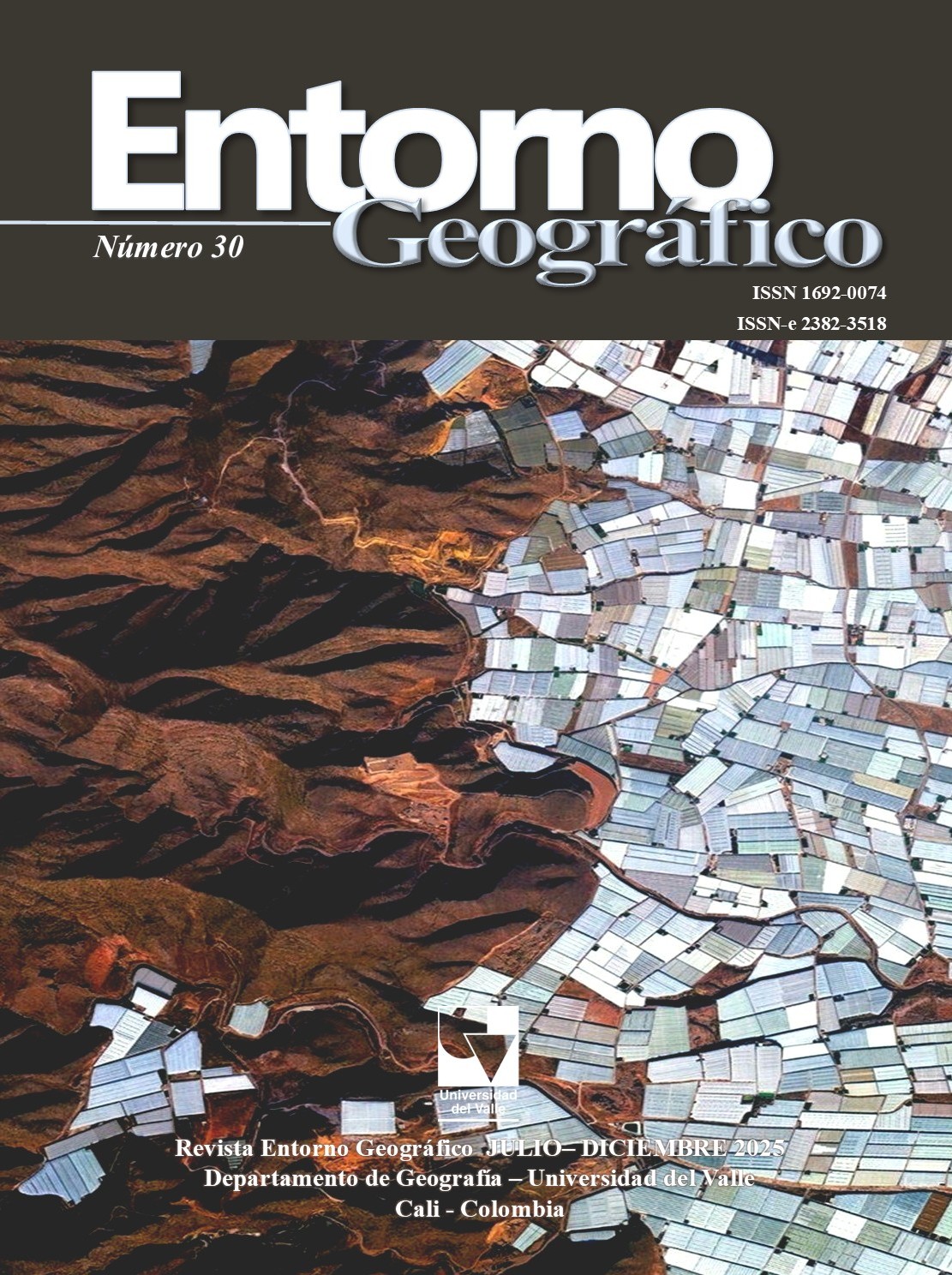 La revista Entorno Geográfico es una publicación semestral que tiene por objeto divulgar avances en la geografía, las ciencias sociales y la educación geográfica. Recibe contribuciones de todas áreas de las ciencias sociales, en especial las relacionadas con la geografía. La revista también recibe artículos originales de áreas aplicadas de la geografía como la planificación y gestión territorial, ambiental o de riesgos que describan desarrollos nuevos y significativos aplicables en la solución de problemas socioespaciales.